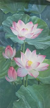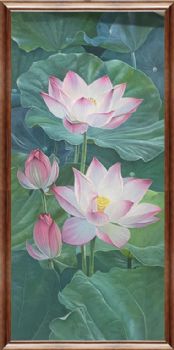• Pure hand-painted lotus landscape oil painting with the meaning of harmony and generating wealth