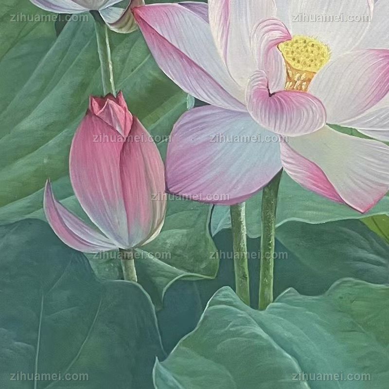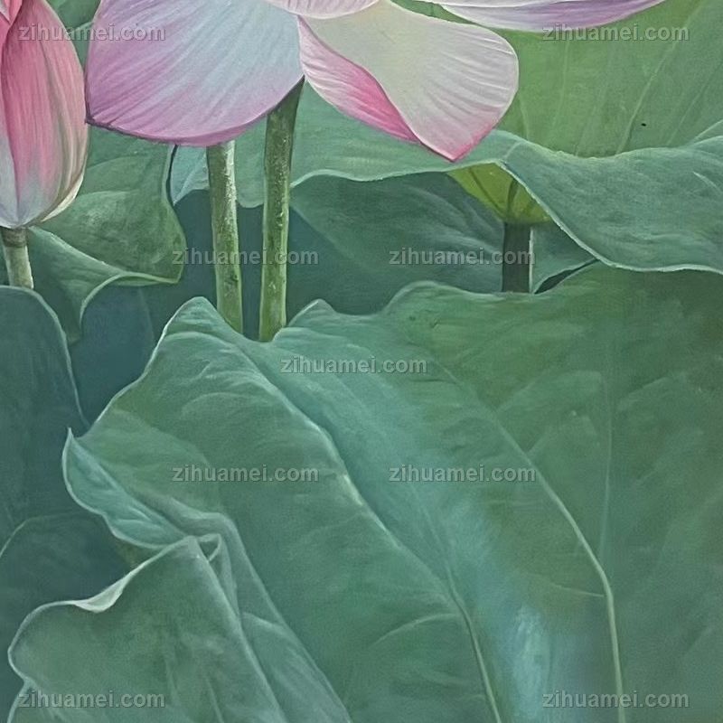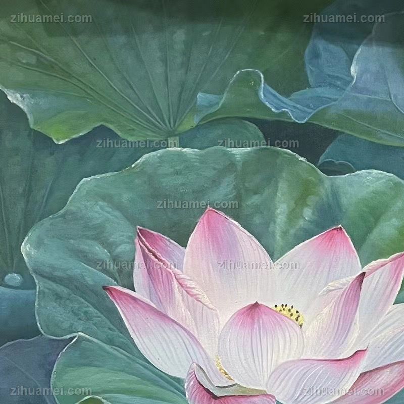 寓意和气生财纯手绘莲花荷花风景油画