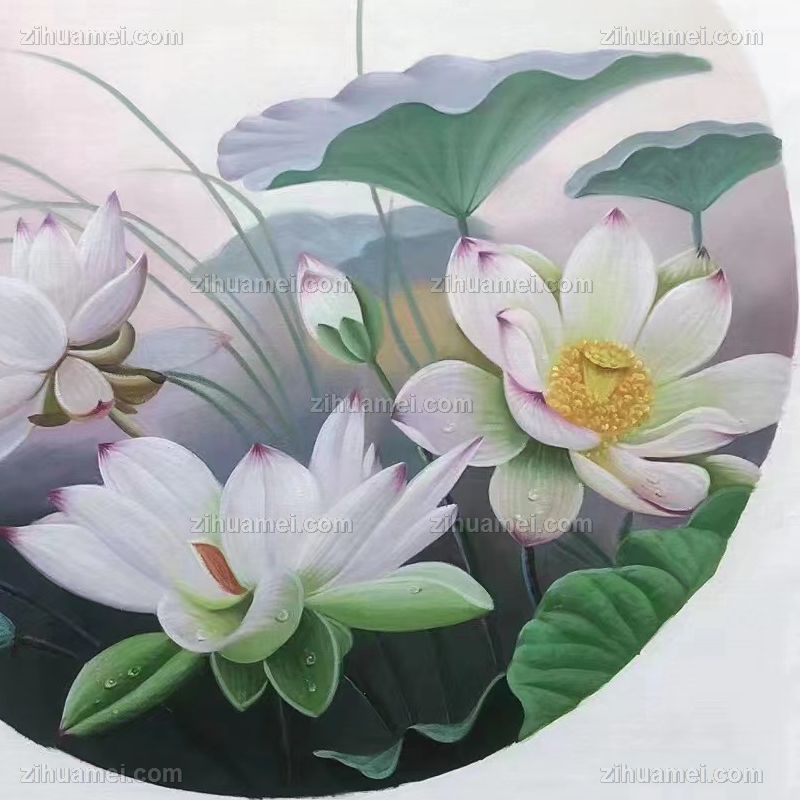 • Circular aluminum alloy landscape oil painting Lotus pond landscape oil painting