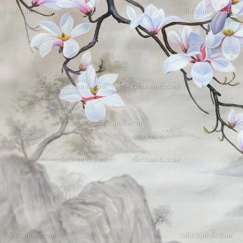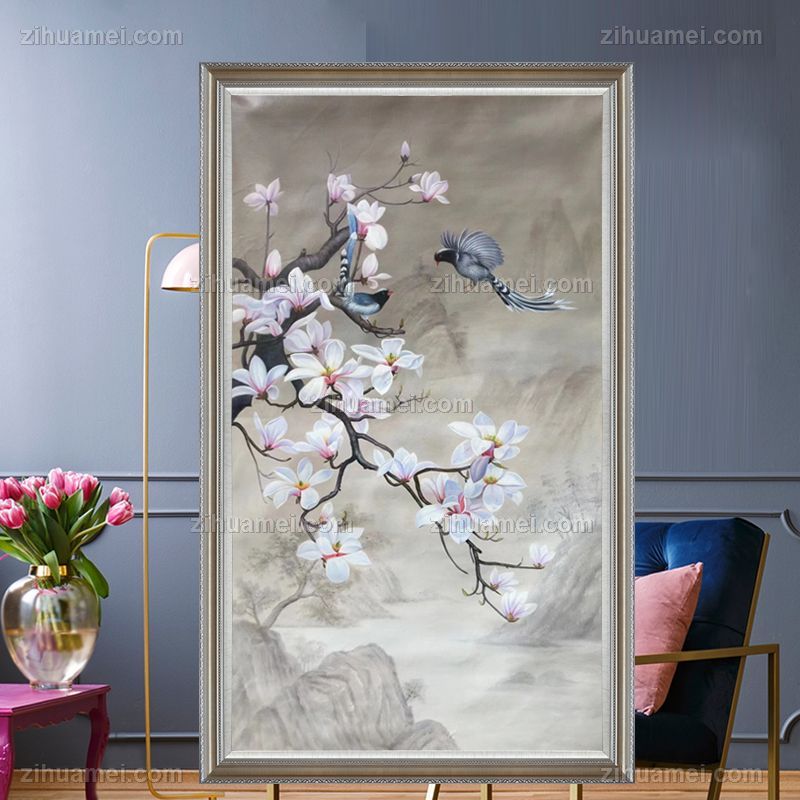 • Flower oil painting suitable for corridors and corridors, magnolia blooming