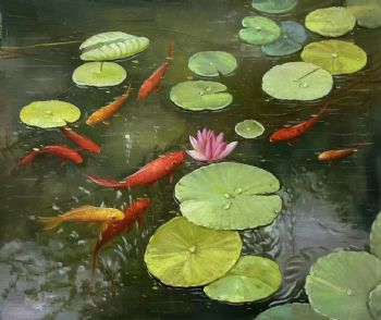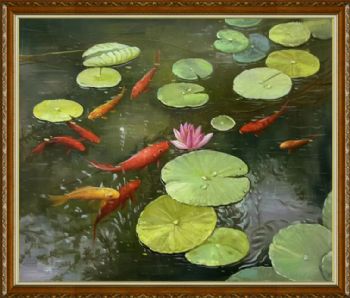 • Nine Fish Pure Hand Painted Lotus Oil Painting