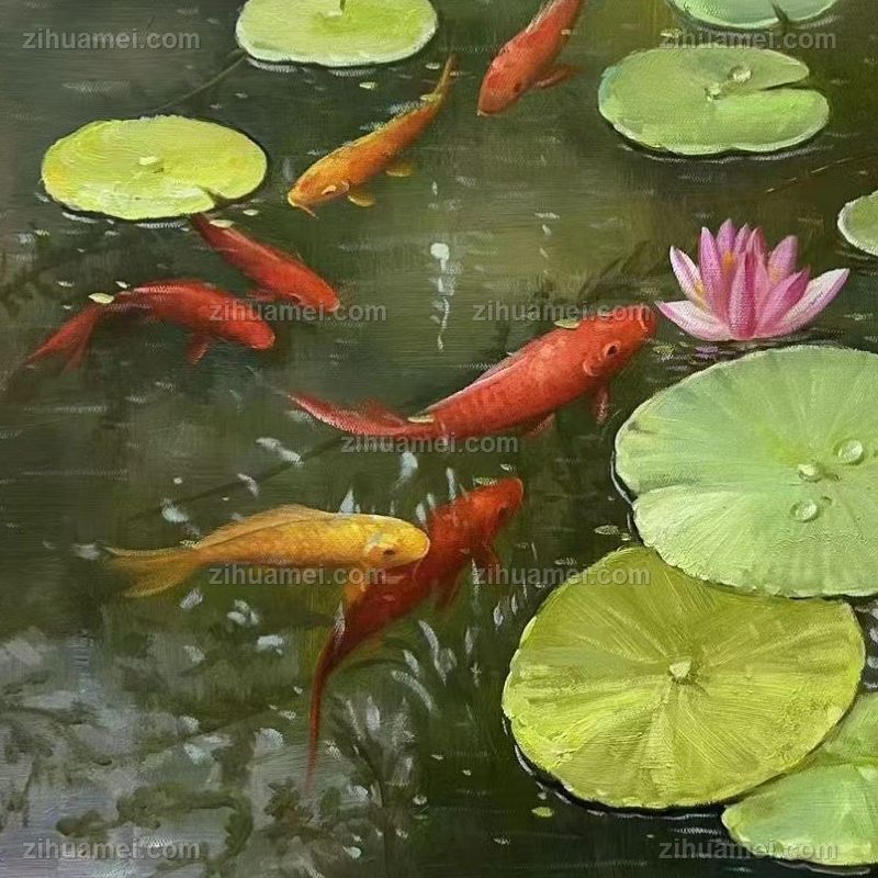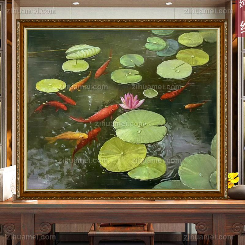 九鱼图纯纯手绘荷花油画