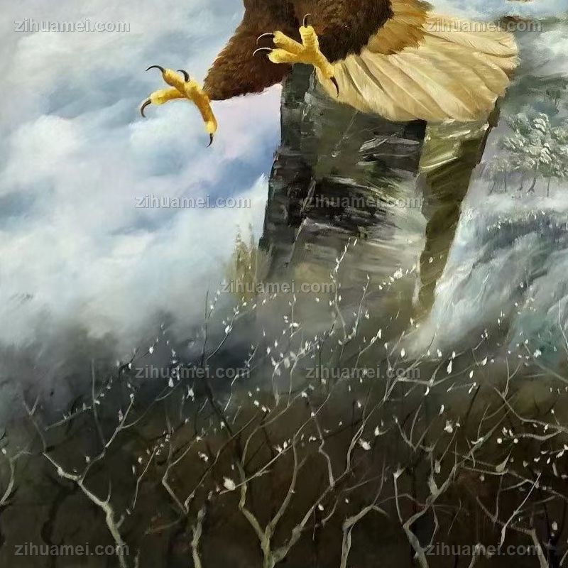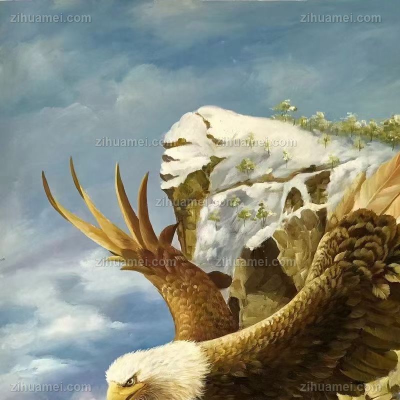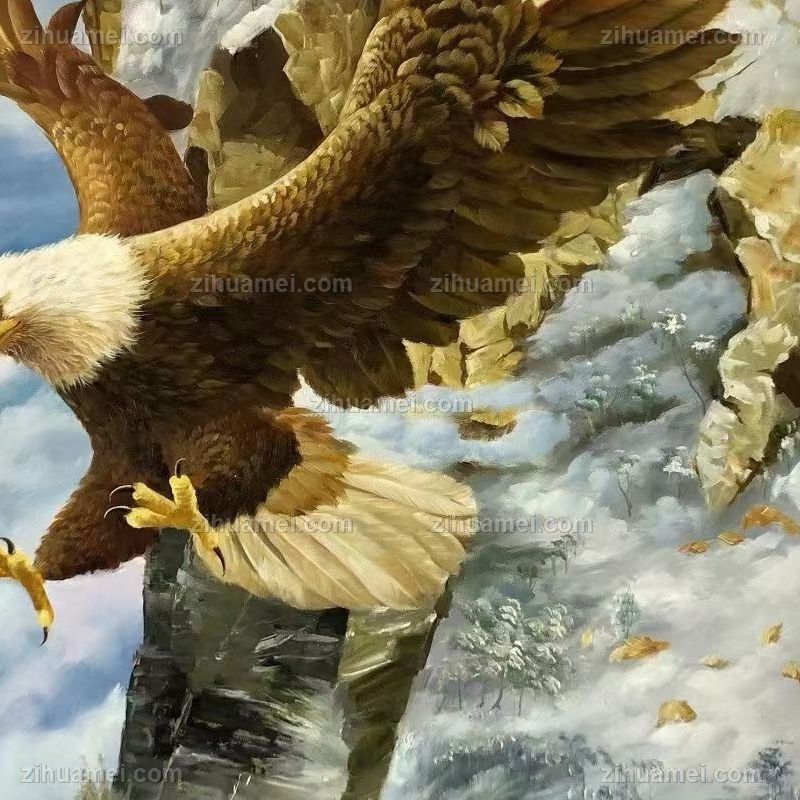 • North Korean oil painting, pure hands, pure animals, oil painting, eagle, boundless journey