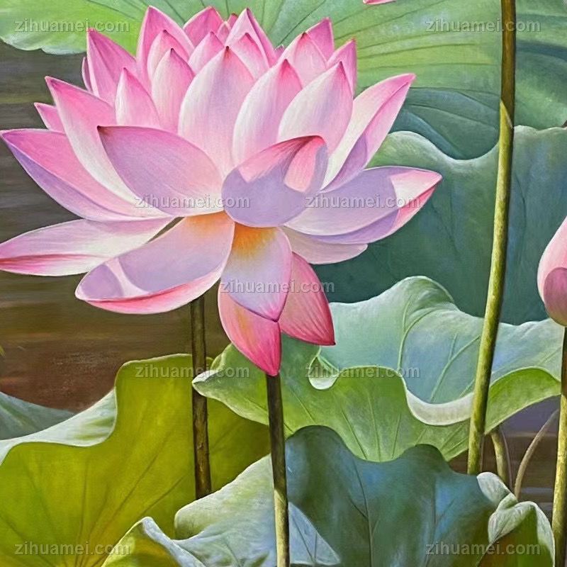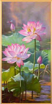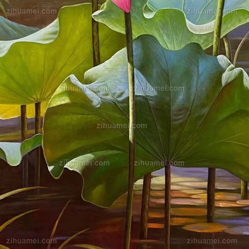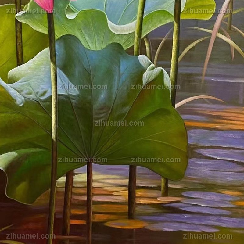 • Harmony brings wealth and beauty, realistic lotus pond scenery oil painting, pure hand-painted oil painting