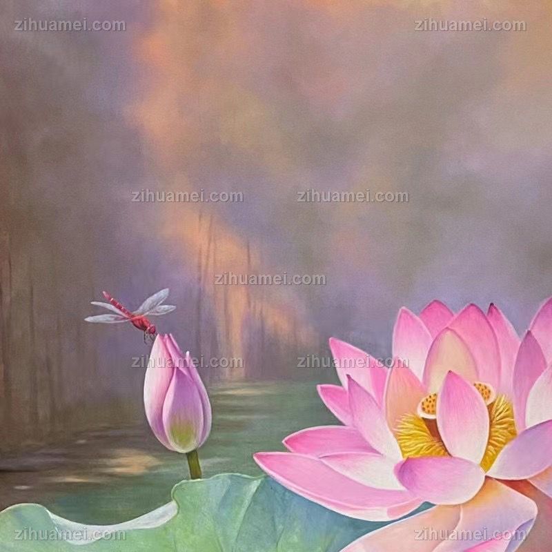 适合中式客厅玄关走廊荷花风景油画