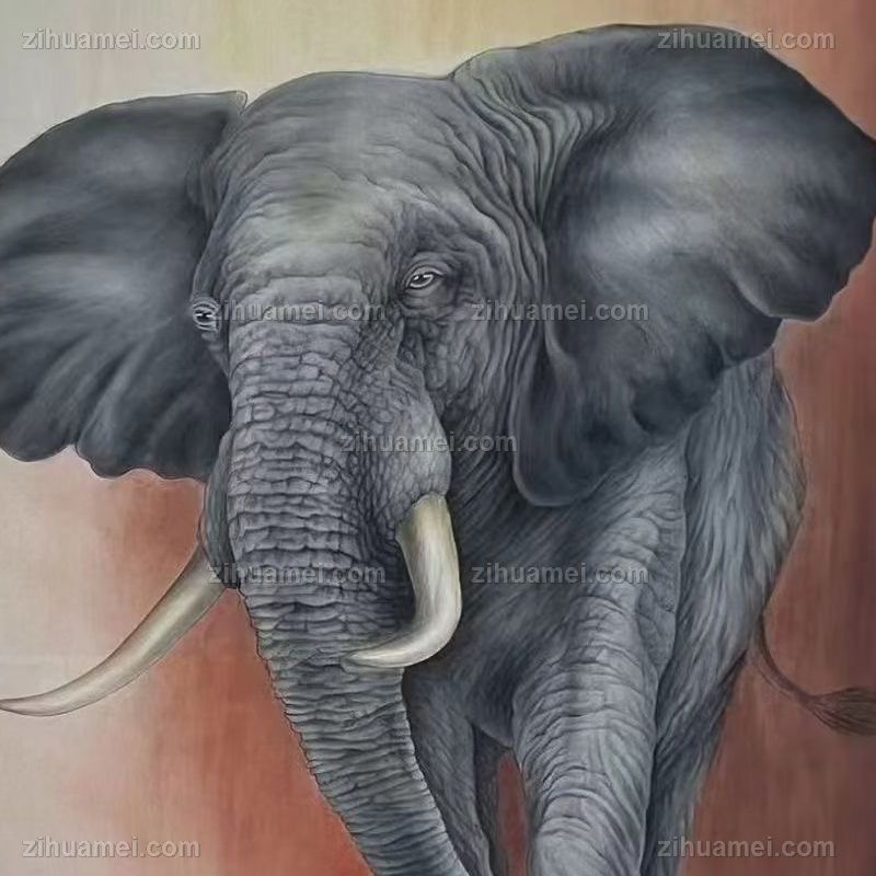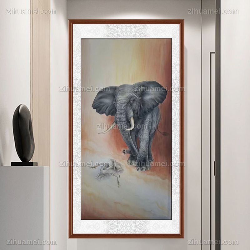 纯手绘大象与仙鹤动物国画
