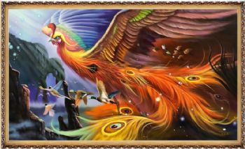 • Original boutique Phoenix Flower and Bird Oil Painting
