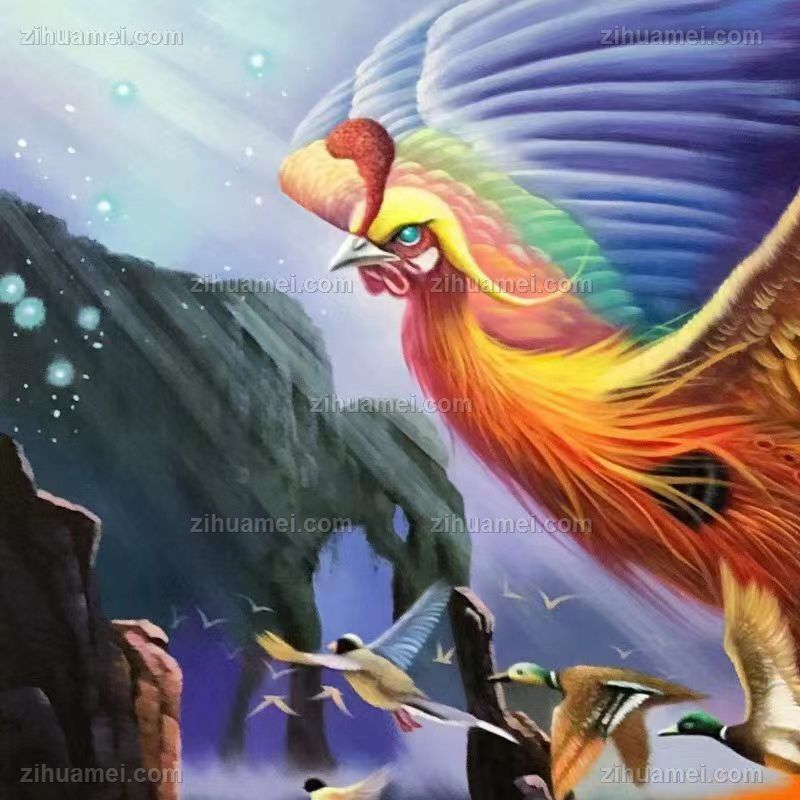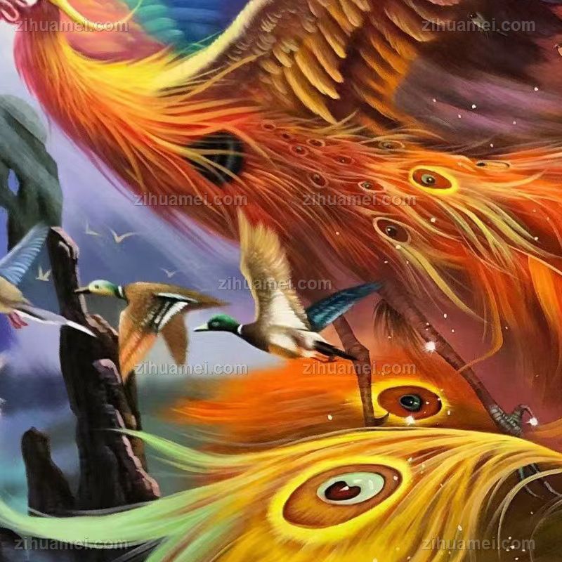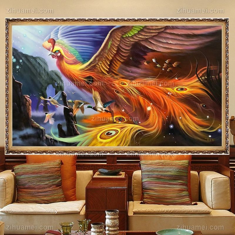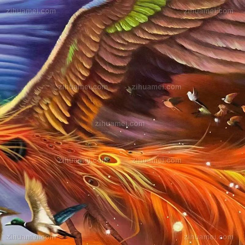 • Exquisite Hundred Birds Paying Homage to Phoenix Pure Hand drawn Phoenix Flower and Bird Oil Painting Living Room Hanging Painting Solid Wood Frame