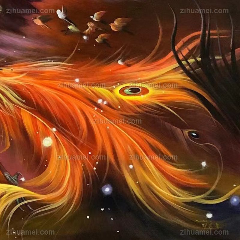 原创精品凤凰花鸟油画
