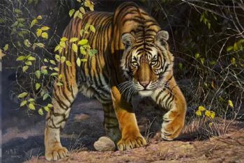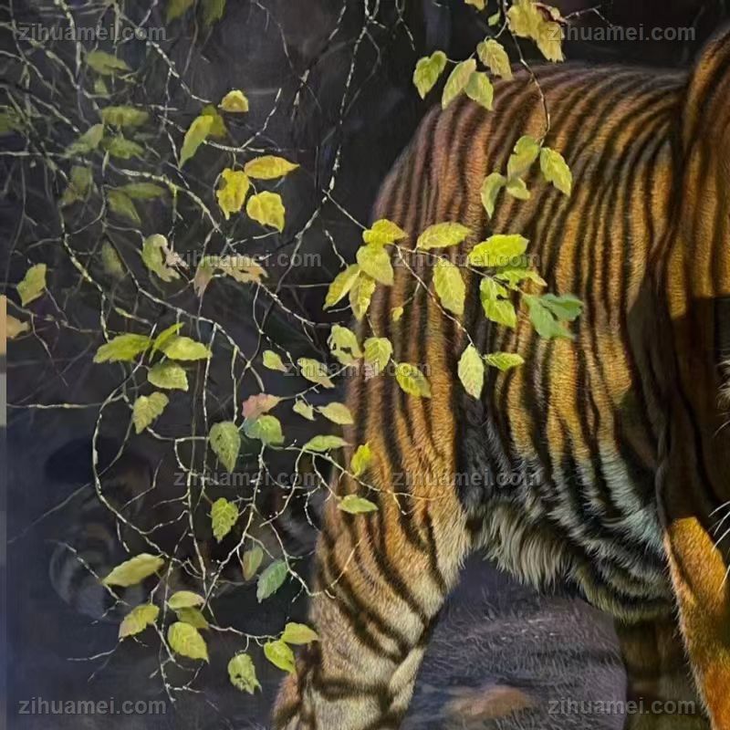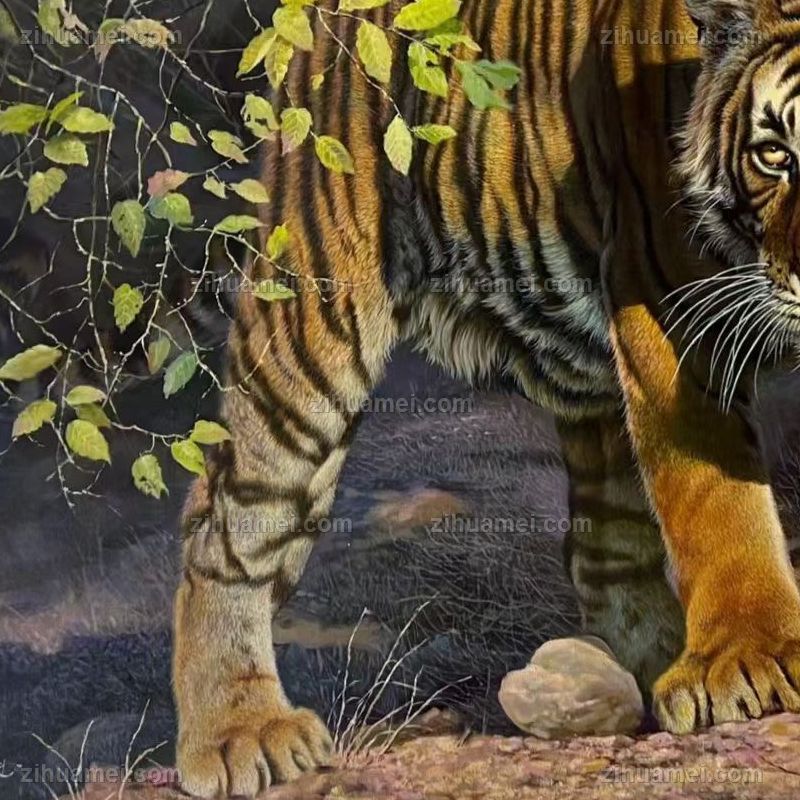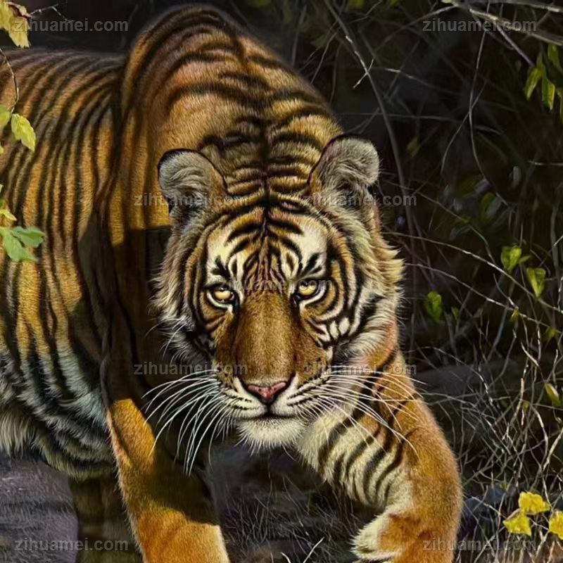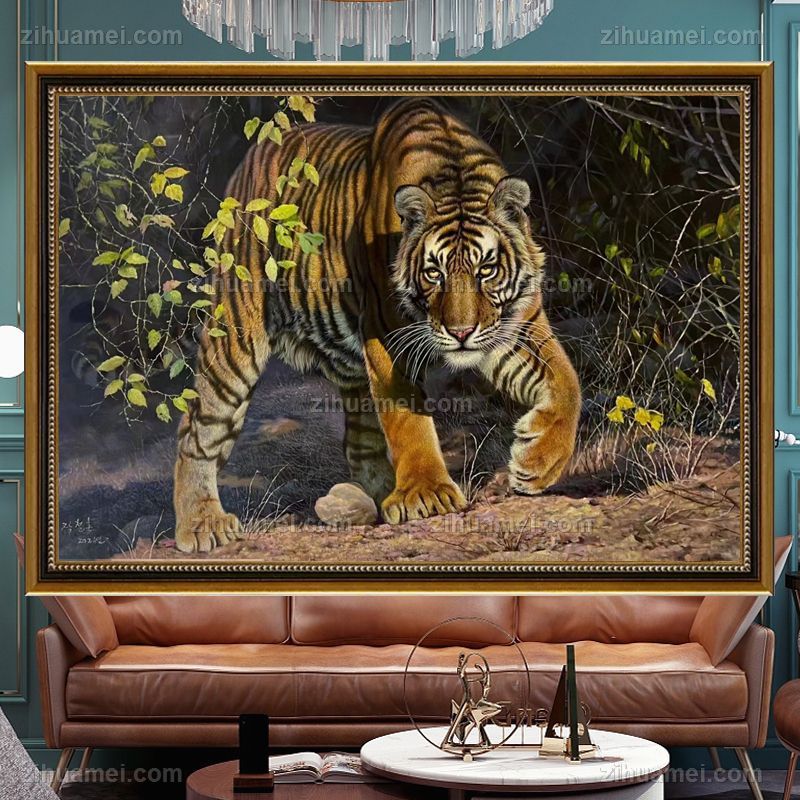 办公室动物油画老虎王者风范