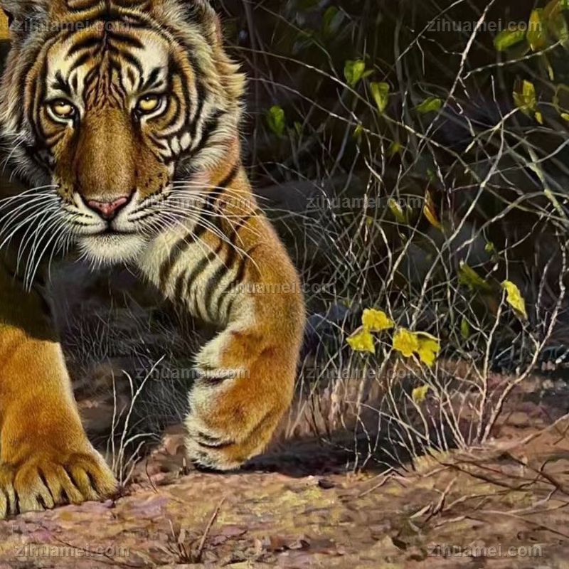 • Fine hand drawn realistic oil painting of North Korea, animal oil painting, tiger painting, tiger and tiger living power hall oil painting