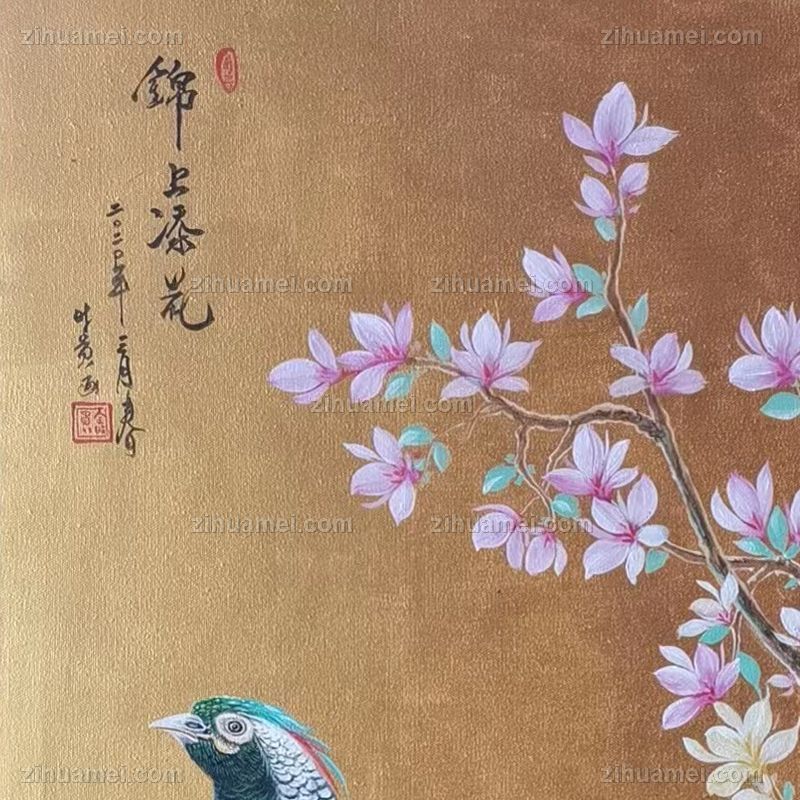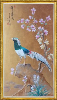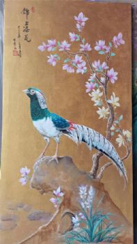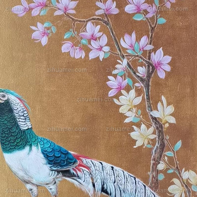 动物油画锦上添花锦鸡图