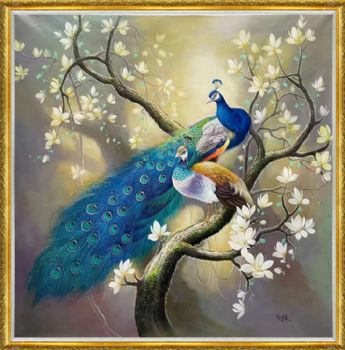 • Hand drawn peacock oil painting