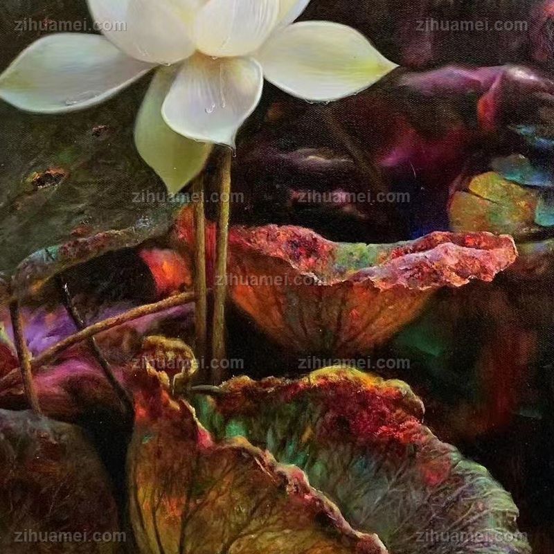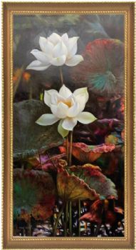 • Exquisite North Korean oil painting, white lotus landscape oil painting, entrance collection, oil painting, solid wood frame