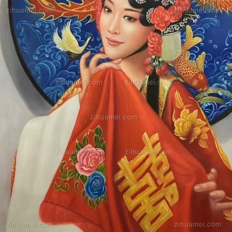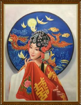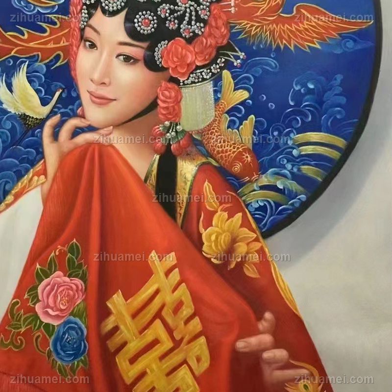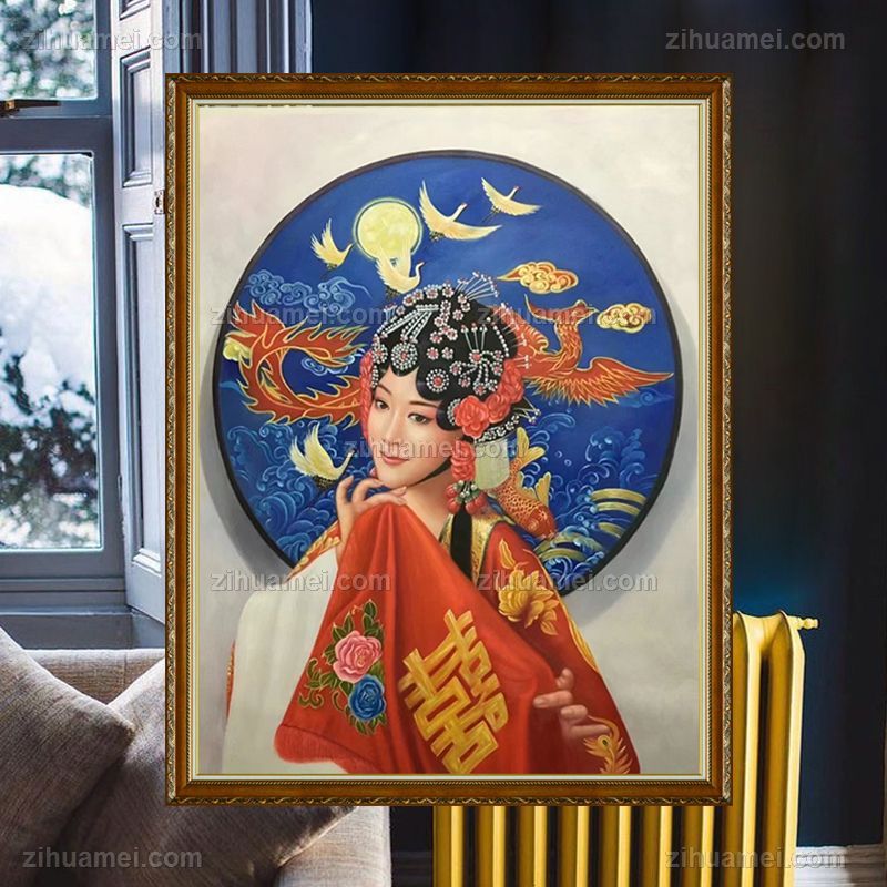 • Realistic oil painting of characters, pure hand drawn Peking Opera characters, Chinese quintessence, hand drawn oil painting of living room, solid wood frame