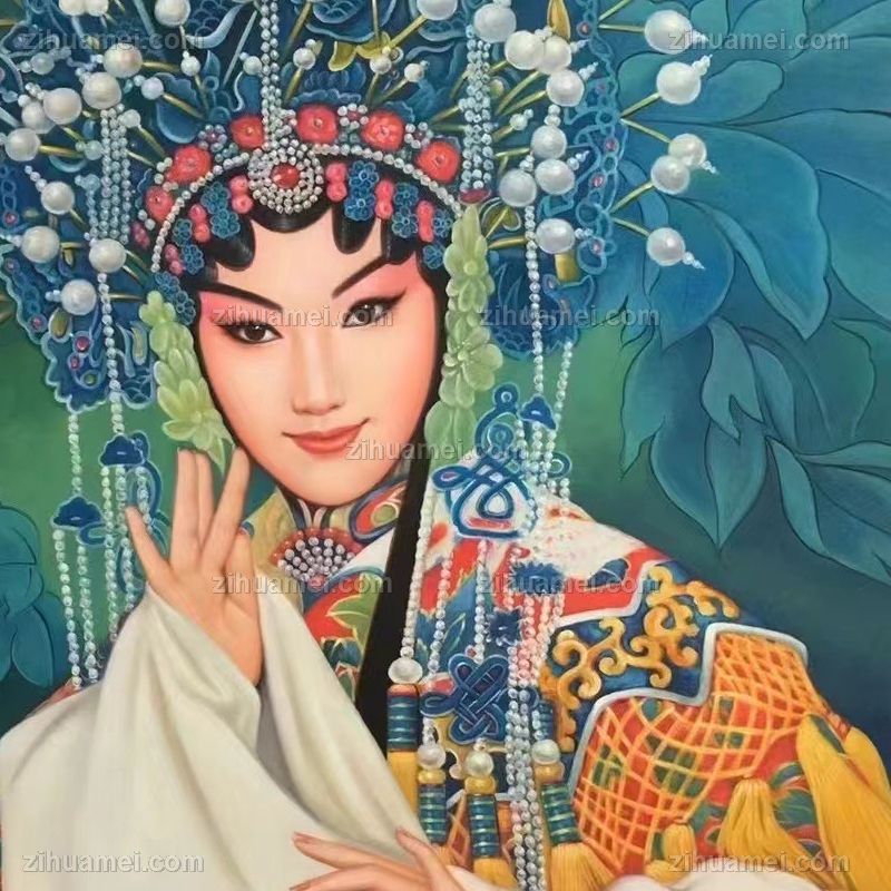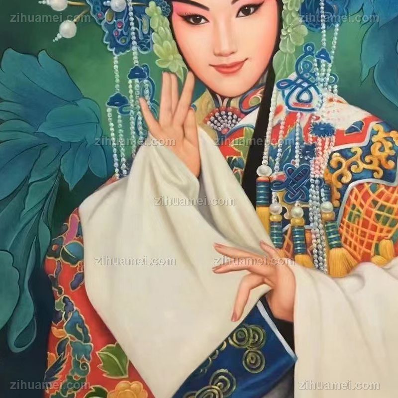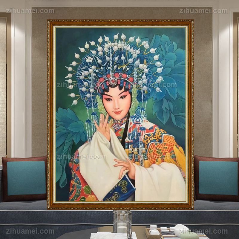 • New Chinese style figure oil painting, pure hand drawn, Beijing opera national quintessence character images, realistic oil painting, solid wood frame