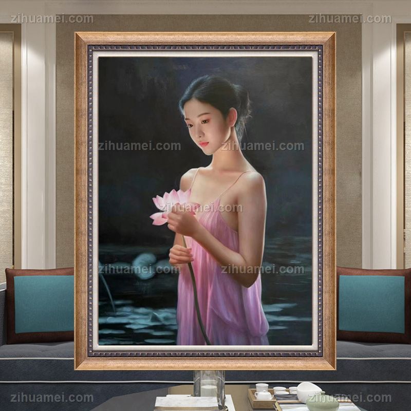 • Pure hand drawn figure oil painting, realistic beauty body oil painting, exquisite figure oil painting, solid wood frame