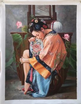 • Wholesale pure hand drawn realistic oil paintings of figures, classical costume figures, beautiful women, realistic oil paintings