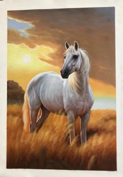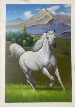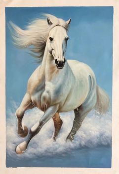 • Wholesale hand drawn animal oil paintings take the lead, realistic white horse paintings, pure hand drawn animal oil paintings