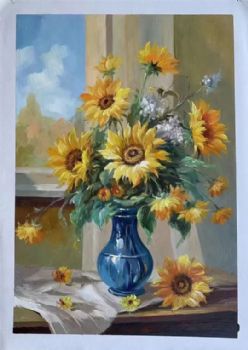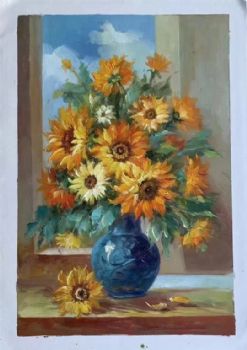 • Wholesale flower oil painting pure hand-painted freehand vase flower oil painting European oil painting core