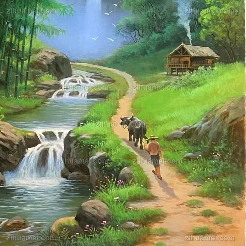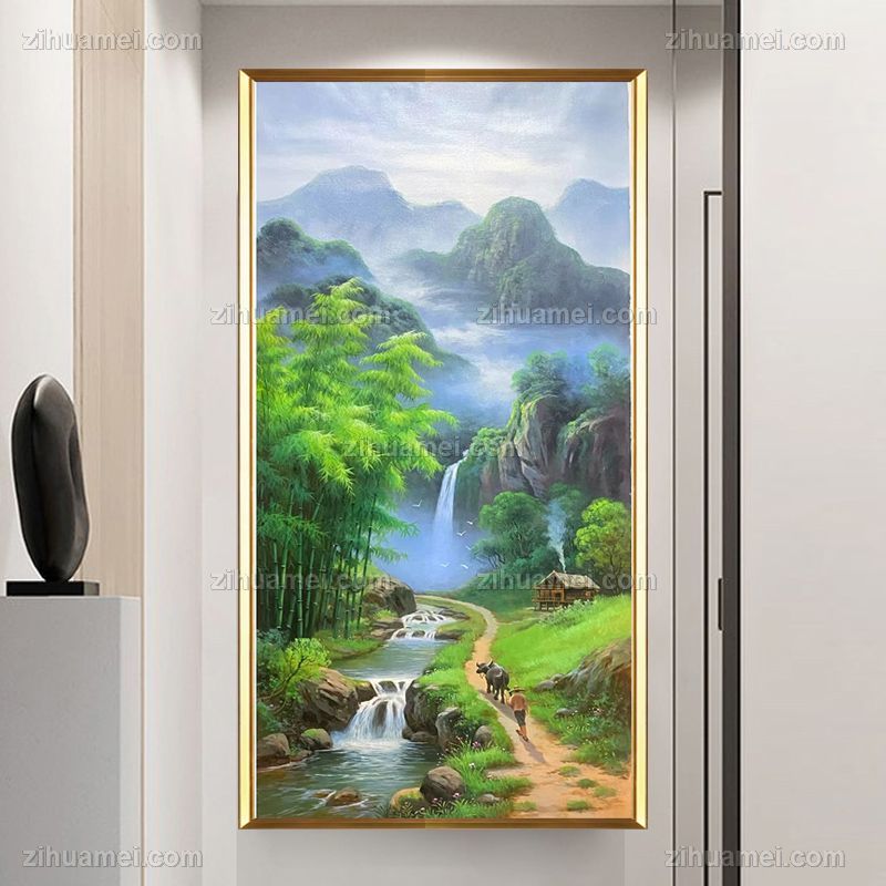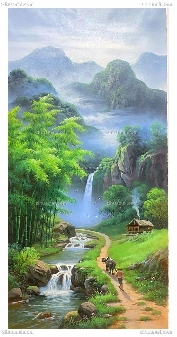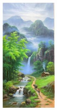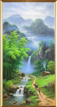 • Farming at home, bamboo forest, landscape oil painting, pure hand-painted bamboo, peace oil painting, solid wood frame