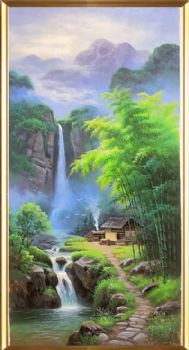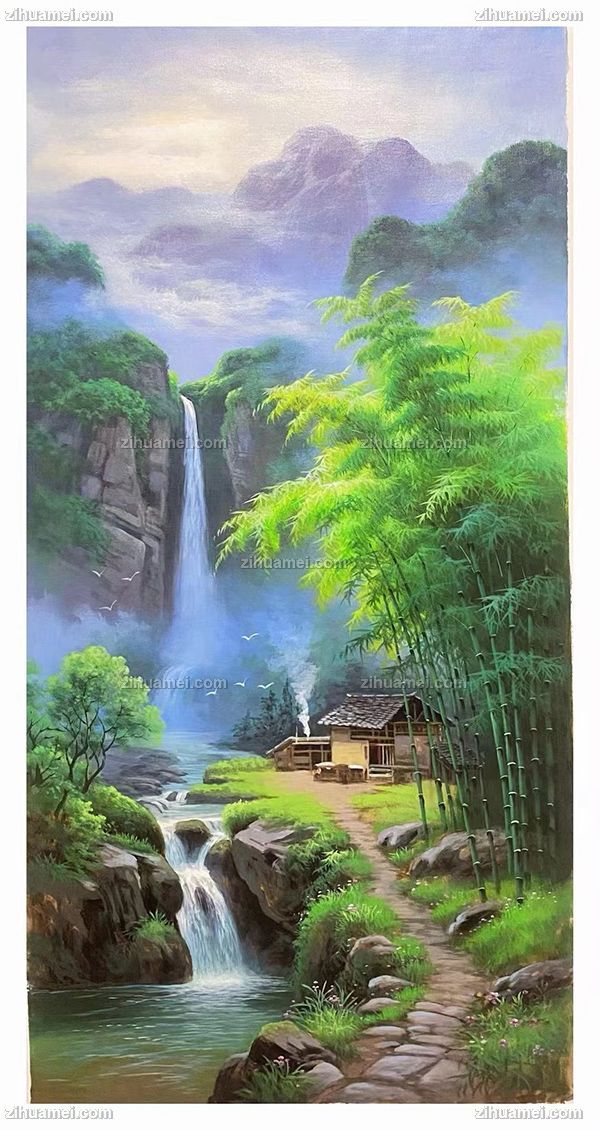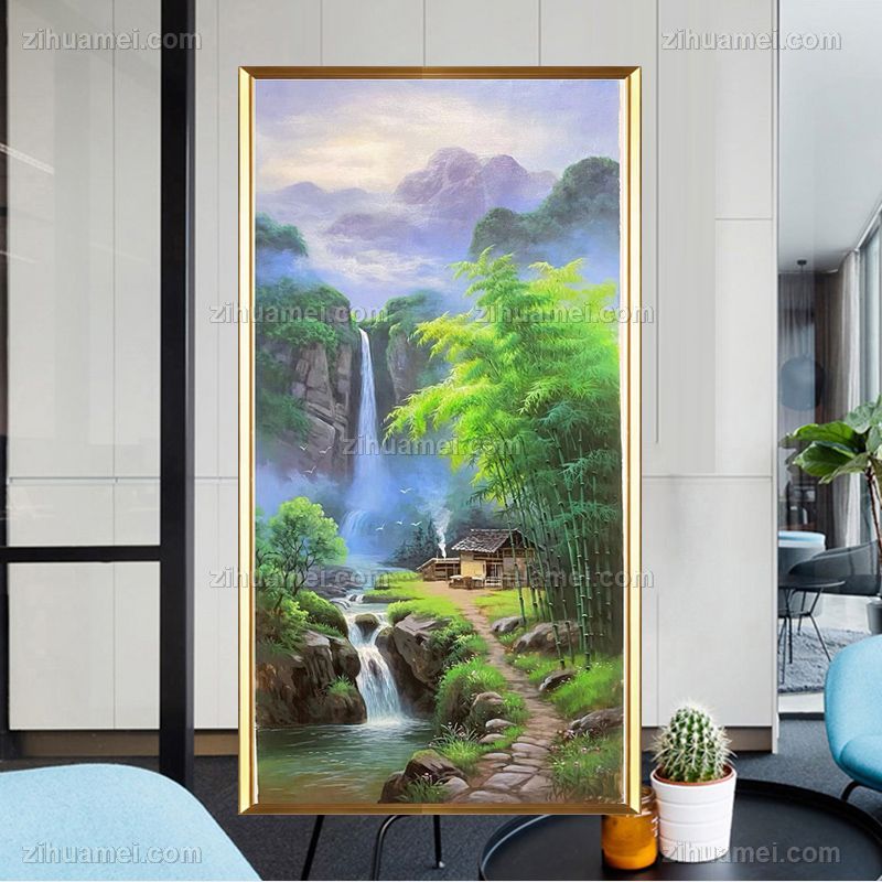 • Chinese style bamboo forest landscape oil painting at the entrance
