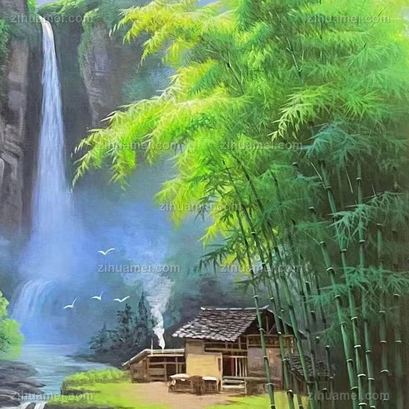 • Bamboo news, peace, wealth, rolling in. Pure hand-painted bamboo forest scenery, oil painting, solid wood frame