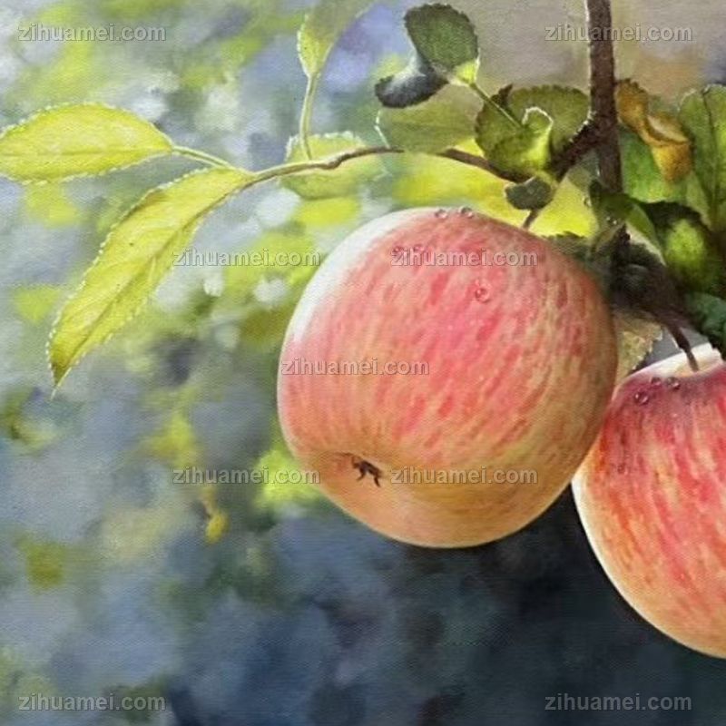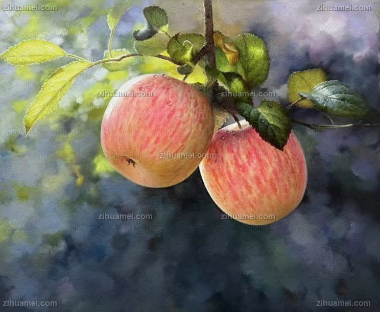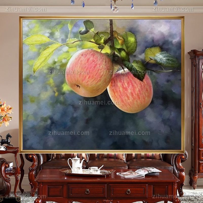 实木外框超写实手绘苹果油画